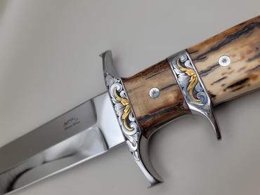 At the 2023 Blade show in Atlanta, one of his engraved knives won the "Best Dressed Fighter" award. This was a sub-hilt big bear fighter by Gary Langley.
